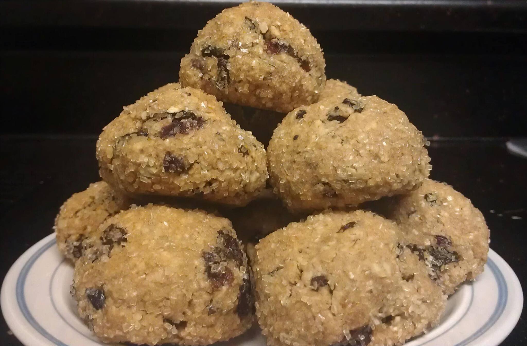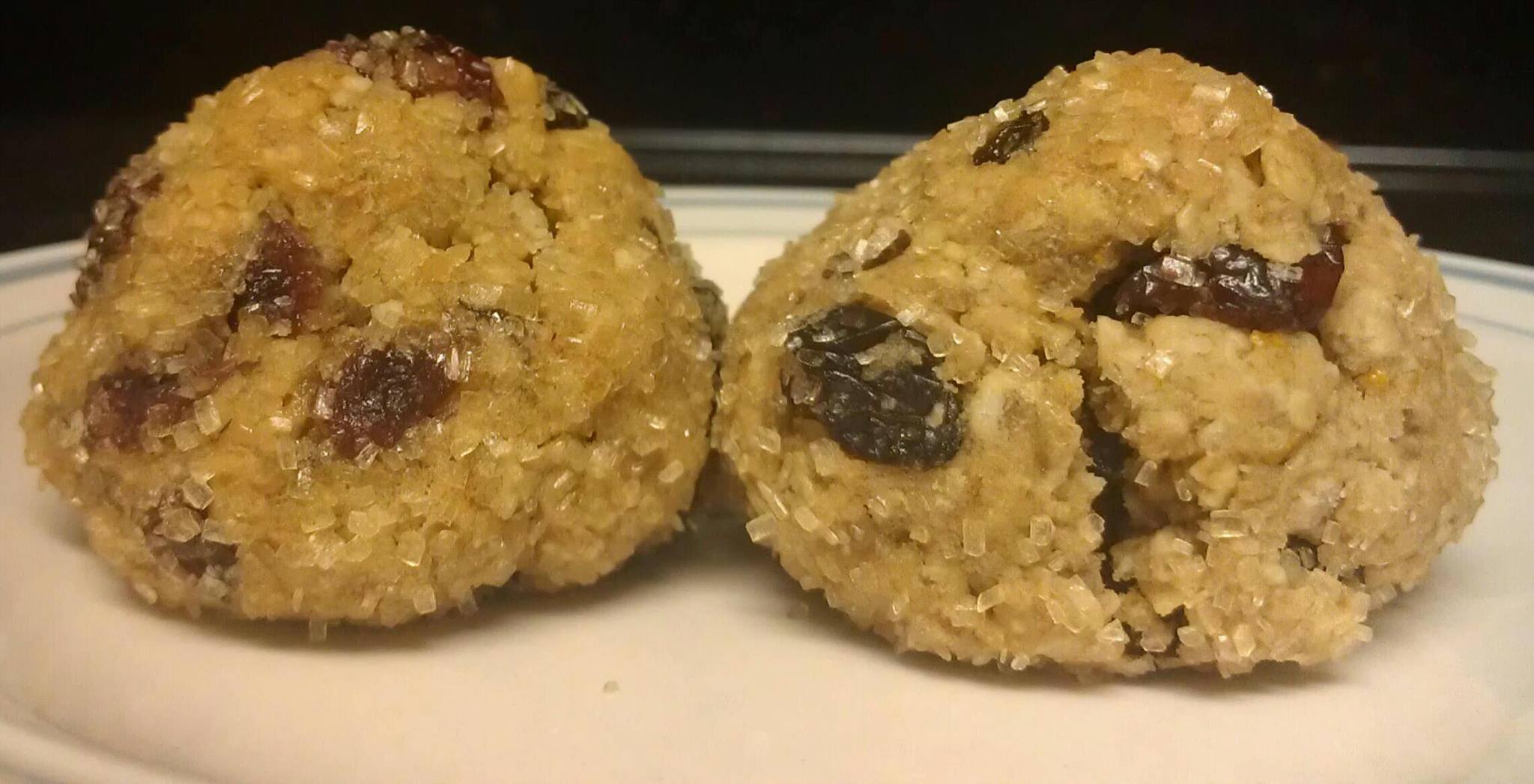 An old-fashioned oatmeal cookie given a classy upgrade. These dome-shaped treats are filled with cranberries and raisins. The orange juice provides a bright contrast to the tartness of the cranberries, while the rum adds a comforting warmth. The crunchy exterior gives way to a soft and delectable middle. Classic and luxurious in every way.