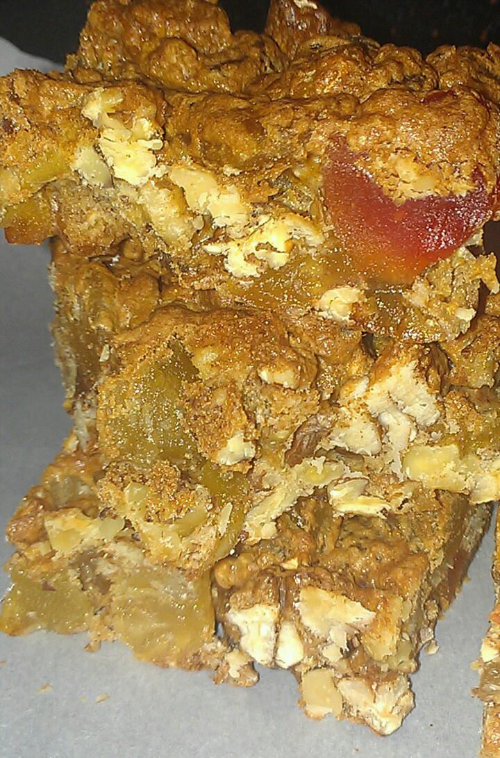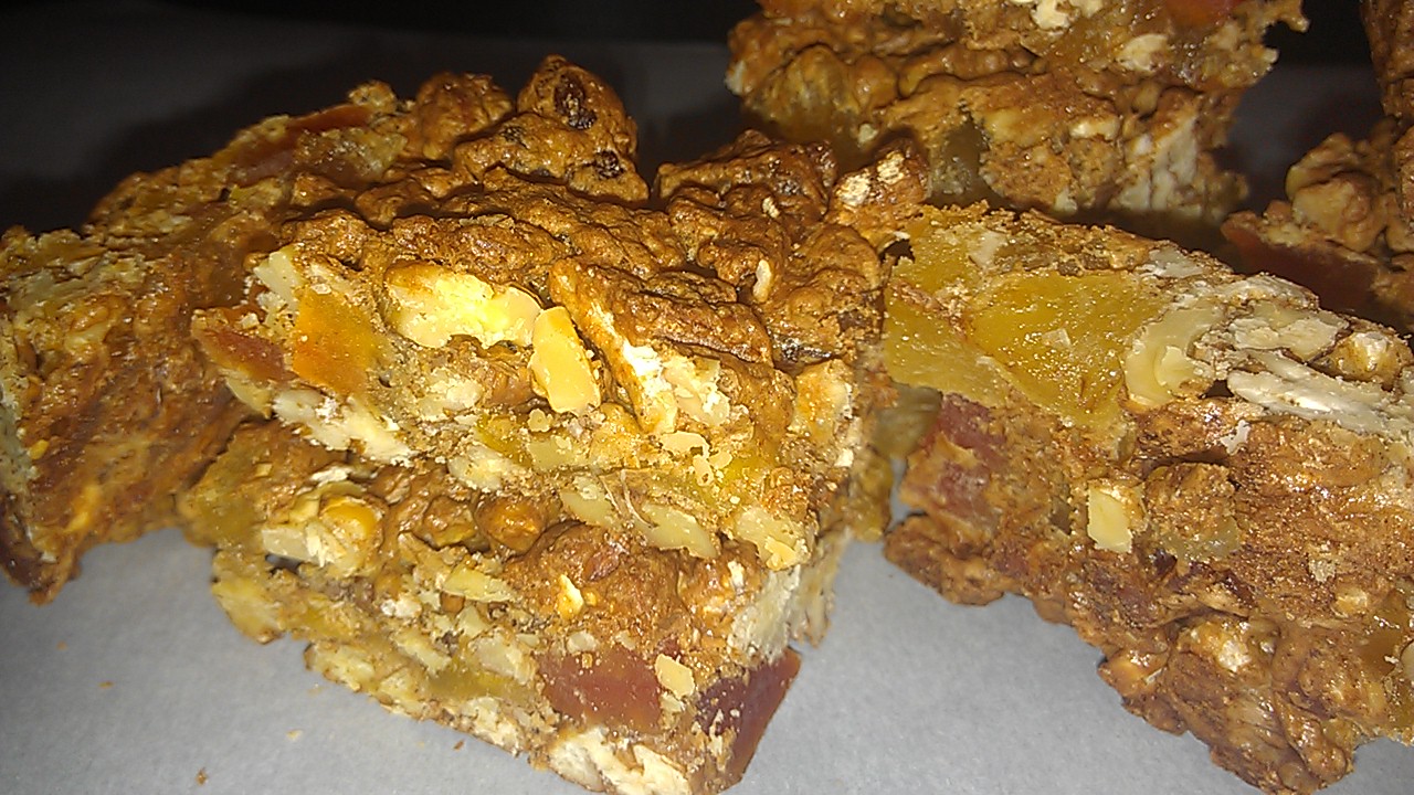 These bars are filled with tropical fruits (mangoes, papayas, and pineapples) as well as both walnuts and pecans. Made with light brown sugar to add it's subtle hint of molasses to the mix.